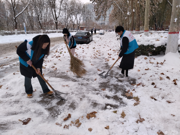 党委迅速行动,先后于12月11日、14日、15日,组织师生党员、学生骨干、青年志愿者在C4楼周侧、B1南侧及西侧责任区及时开展积雪清扫活动,为大家安全出行保驾护航。
