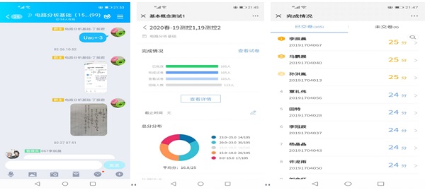 基于本课程需要大量的公式的推导、电路分析方法的讲解的属性,最终决定以QQ为直播平台,结合雨课堂课前预习、课中知识点测试、课后发布作业及EV录屏的模式进行教学。