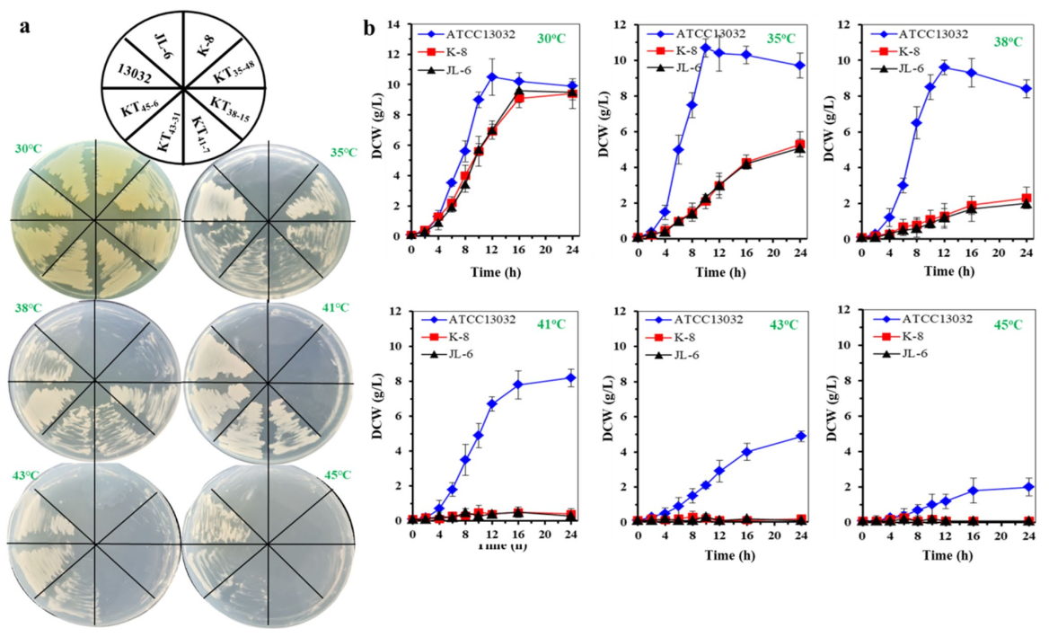 徐建中副教授团队采用“传统育种”和“基因工程育种”相结合的方法,对谷氨酸棒杆菌进行系统性改造,发现使该菌能够以淀粉为主要原料高效生产L-赖氨酸的两个关键因素:一是使该菌能够在高温下正常生长从而为高活性淀粉水解酶提供环境;二是将最适外源淀粉水解酶在谷氨酸棒杆菌中成功表达从而使该菌具有降解淀粉的能力。该研究通过适应性实验室进化、异源表达淀粉水解酶、重组双功能酶的融合表达和发酵验证等实验,成功实现将菌株耐高温的性能和高效降解淀粉的能力结合到一株产L-赖氨酸的谷氨酸棒杆菌中,使其能够以淀粉为主要原料高效地生产L-赖氨酸。这是首次报道的以淀粉为主要原料一步法高效合成L-赖氨酸的工程化产生菌,为实现以淀粉为主要原料工业化生产氨基酸提供理论基础和技术支持。