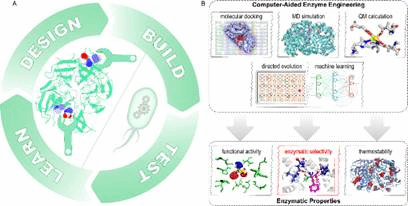 图1计算辅助理解与改造酶催化功能。
