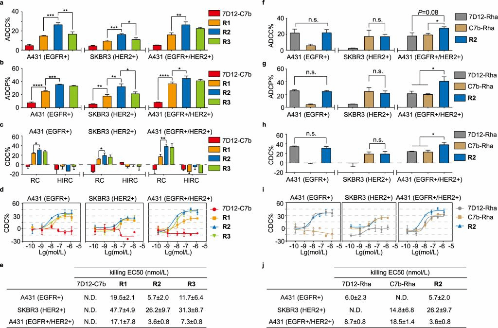 图2 bsNb-Rha偶联物的ADCC、ADCP和CDC活性评估