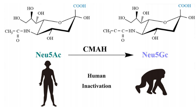 图5两种主要哺乳动物唾液酸(Neu5Ac和Neu5Gc)的进化