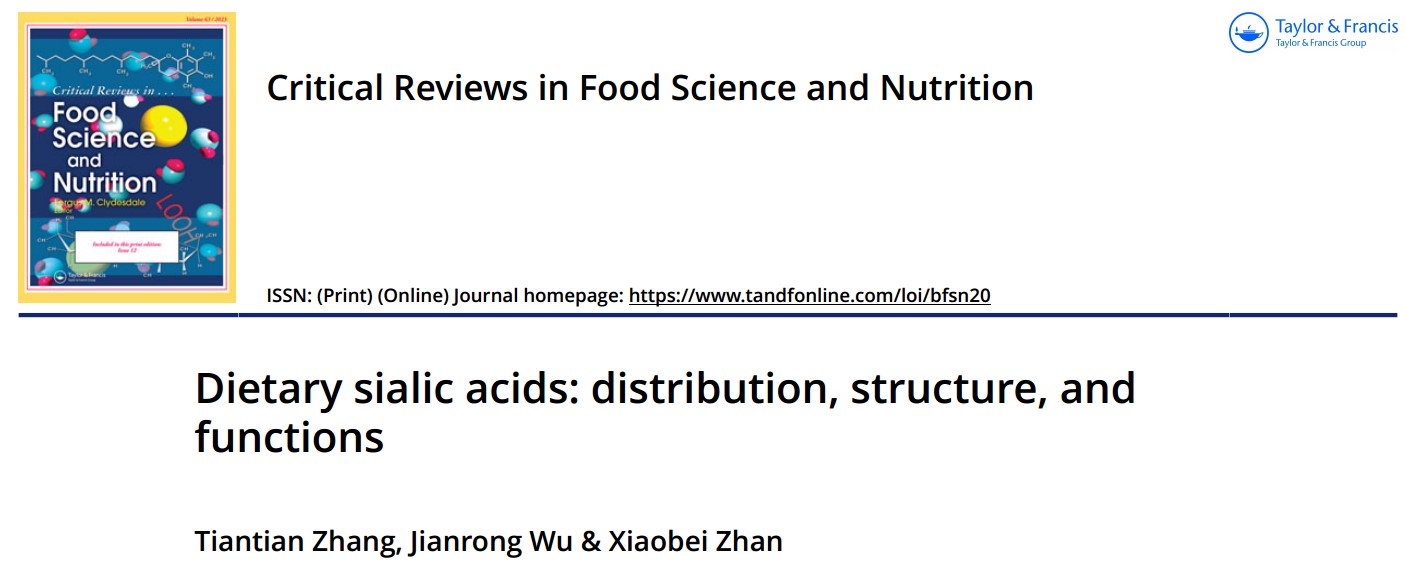 高敏杰教授团队吴剑荣副教授课题组在国际食品领域顶级期刊《Critical Reviews in Food Science and Nutrition》(中科院一区TOP期刊,IF=11.2)在线发表了题为“Dietary sialic acids: distribution, structure, and functions”的综述论文,全文阐述了常见的富含唾液酸的膳食食物中唾液酸的分布、结构和生理学功能。