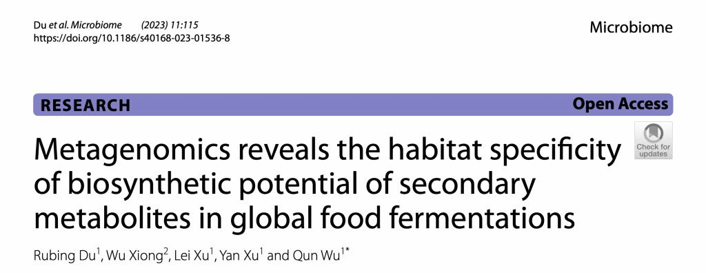 徐岩教授团队吴群教授课题组在发酵食品微生物方面取得重要进展,研究成果“Metagenomics reveals the habitat specificity of biosynthetic potential of secondary metabolites in global food fermentations”正式发表于Microbiome(Q1,IF: 16.837)。Microbiome是微生物领域的国际权威期刊,在微生物领域中排名6/158 (期刊引用指数JCI)。
