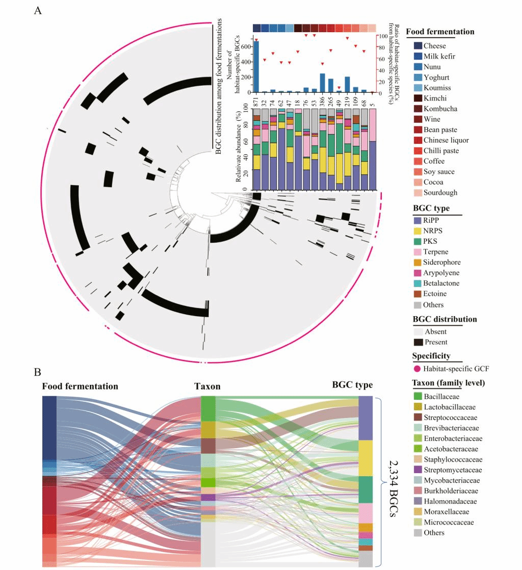 发酵食品被认为是对人类健康有益的。微生物通过生物合成基因簇(BGCs)代谢产生多种多样的次级代谢产物,这些产物通常具有宝贵的生物活性。然而,全球食品发酵中微生物次级代谢潜力的多样性和分布仍然未知。