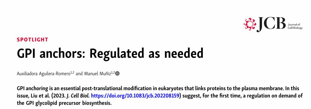 近日,西班牙塞维利亚大学(University of Seville)Manuel Muñiz教授及Auxiliadora Aguilera-Romero博士在国际高水平期刊Journal of cell biology上撰文(//rupress.org/jcb/article/222/5/e202303097/214027/GPI-anchors-Regulated-as-neededGPI-anchors),专题报道91色