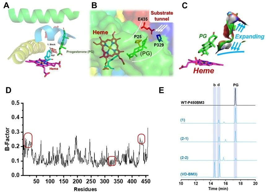 图1 改造P450BM3底物通道提升黄体酮羟基化效率