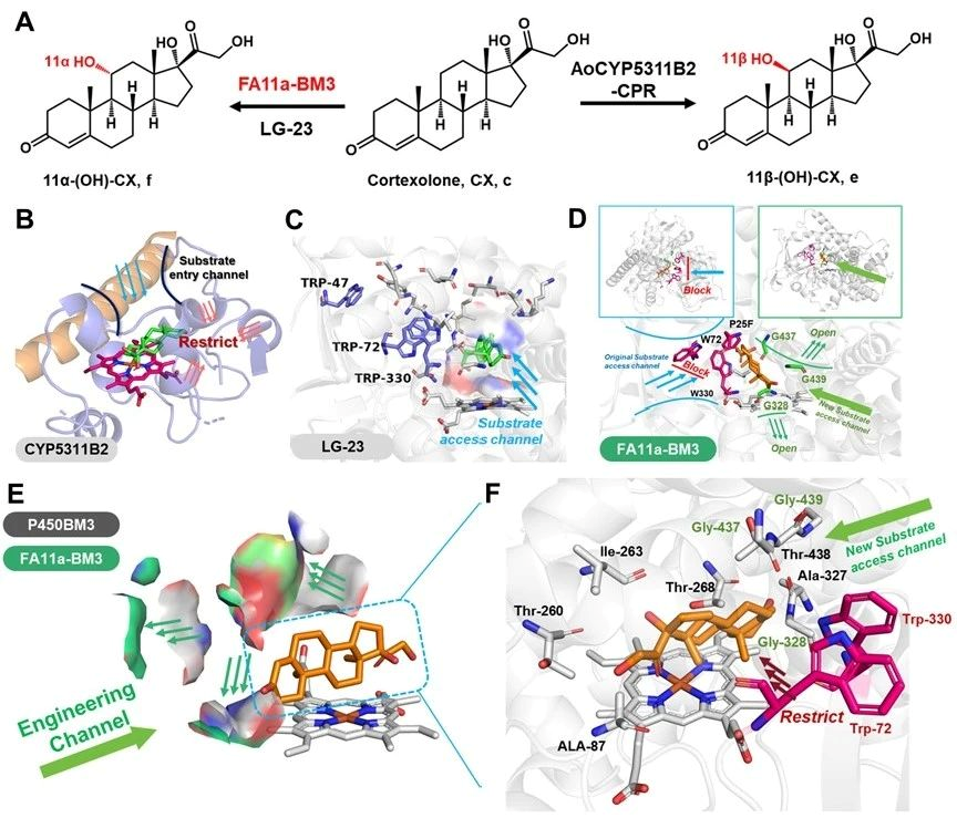 图4 底物通道切换策略实现皮质酮的C-11位羟化