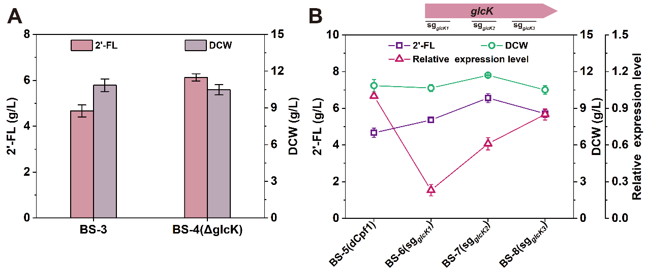 图3 glcK敲除和基因干扰菌株摇瓶发酵结果