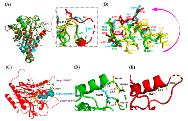 图二. WT与突变体NiHyuC M4的晶体结构比对分析