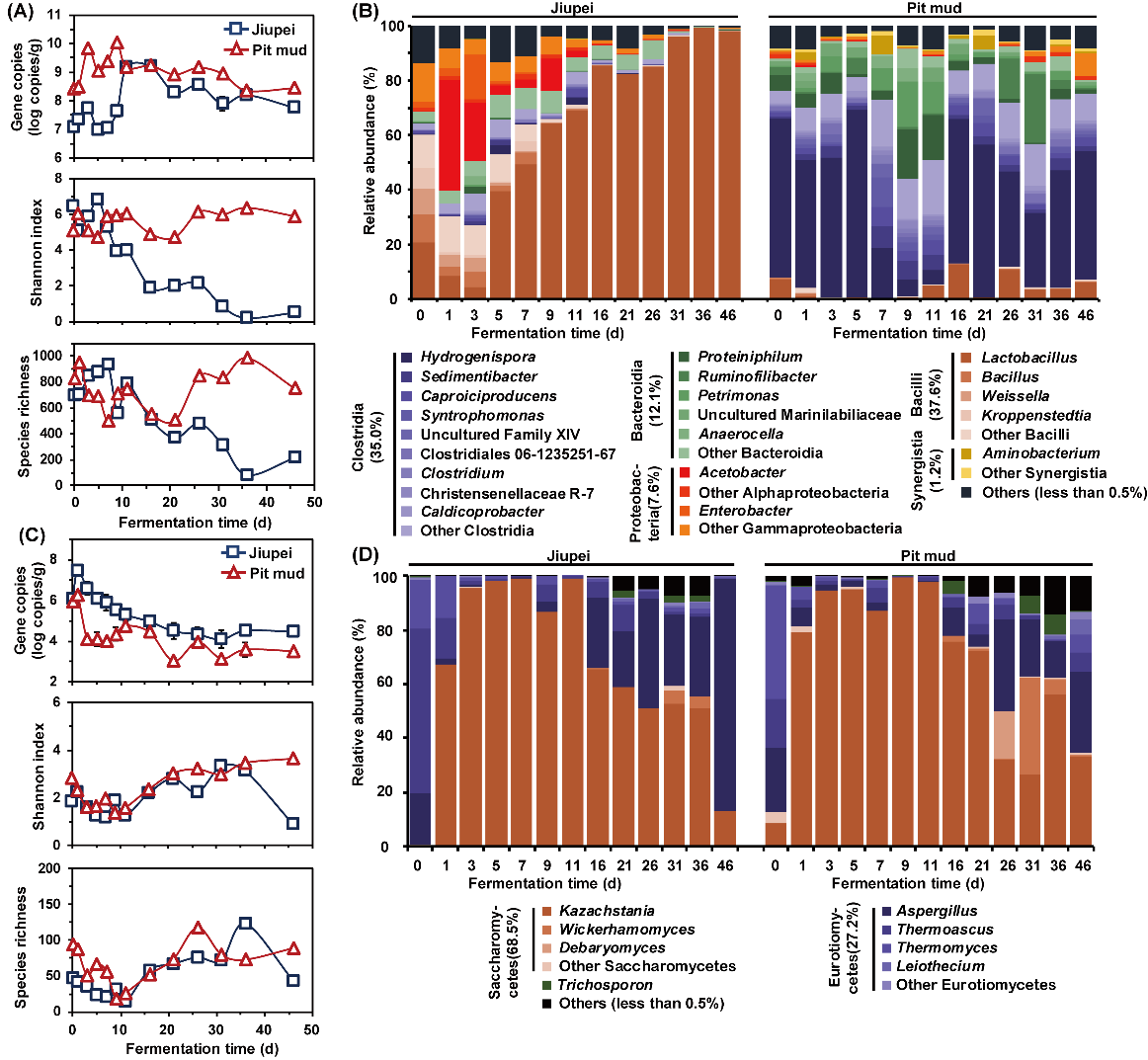 泥窖酿酒是浓香型白酒最具特点的工艺特征,是我国劳动人民数百年实践经验的总结与结晶。泥窖池内网罗了来自原料、大曲、窖泥和环境等的微生物,形成了高度复杂多样的酿造微生物集群。在窖池内,酒醅与窖泥是酿造微生物的天然栖息地,然而,发酵过程这些微生物在浓香型白酒典型风格形成中的协作机制有待解析。