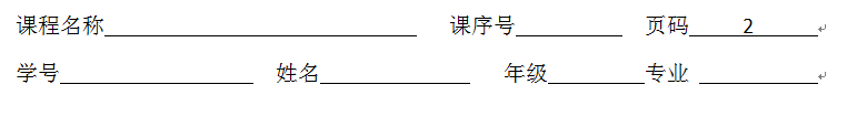 如答题纸超过1页,在第2页页眉处抄写课程名称、学号、姓名、班级等信息,页码标注2,多页以此类推。