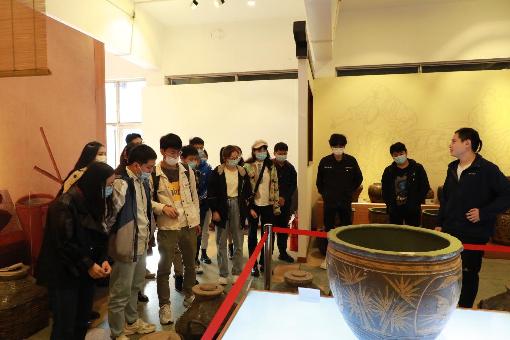 来到玉祁,在赵主任、高经理带领下,同学们参观了酒具博物馆、双套酒技艺展览馆和白酒生产车间。参观过程中,高经理分别就“润湿、蒸煮、晾晒、入窖、发酵、过滤”等环节向同学们进行了深入讲解。“窖池材料的选择也大有讲究,池底、池壁的考量因素有所差别,不同香型的酒对此要求也不尽相同。”一个个的小步骤中蕴含着如此复杂的原理,同学们收获颇多。在生产车间中,同学们看到了酿酒师傅辛勤的翻料,入窖。在机械化生产的浪潮中,玉祁酒业仍坚持古法酿造,传承非遗技艺,坚守工匠精神。