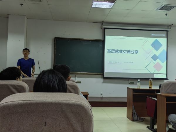 首先,学长学姐根据自身了解详细介绍了基层工作的内涵与工作内容。通过他们的介绍,我们了解到了基层的具体定义;同时也使我们清晰明了的了解参与基层工作的众多渠道。然后,学长学姐通过讲述自己的备考历程为我们介绍了参与基层工作所需要进行的准备工作,包括报考环节和考试内容板块等,为同学们日后报考提供了帮助和指导,最后,学长学姐讲述备考期间的个人感受和相关经验分享,使我们更加了解基层就业,在场同学也获得了很多宝贵的经验和启示。同时学长学姐们也为我们留下了联系方式,为解答我们的疑惑提供了一个便利的渠道。