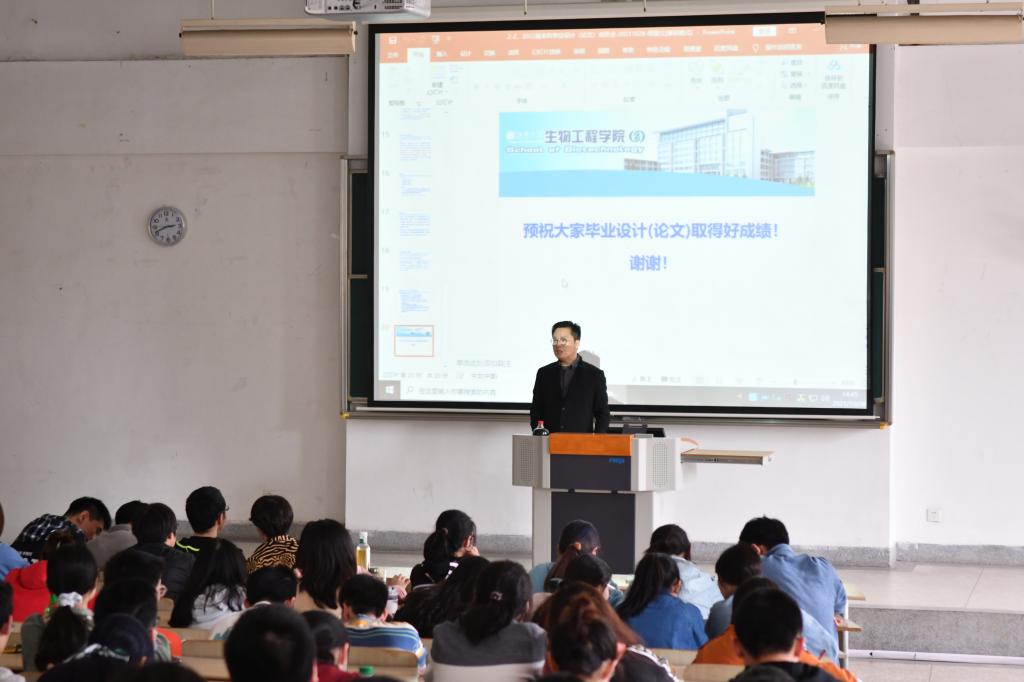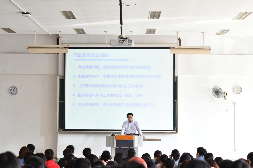 周景文向2018级全体本科生详细地讲解了毕业设计的目标任务、内容涵括、时间节点、过程管理、问题误区等重点要点,强调了毕业设计的真实性、创新性、逻辑性、规范性等要求。他指出毕业设计不仅仅是一段时期的实验和最终的文稿,更是一次本科阶段的综合学术训练,是培养合作协同意识、交流沟通能力、信息获取手段、实践探索创新的重要载体。他鼓励同学们要学会时间管理、掌握平衡艺术,从容有效地应对毕业设计开展阶段遇到的矛盾和困难;他告诫同学们要遵守学术诚信、强化责任意识,努力答好本科阶段的最后一张答卷。