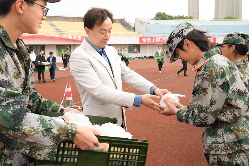 最后,到场的老师们为教官和每位同学送上慰问品。老师们悉心询问同学们的训练状况,对同学们的身体情况表示关心。同学们深切感受到学院领导的关心与挂念。希望同学们在未来的生活中继续发扬不畏艰难、吃苦耐劳、坚持不懈、勇争第一的精神,并在最后几天的训练中持之以恒,以饱满的精神和昂扬的斗志迎接最后的军训汇报表演。