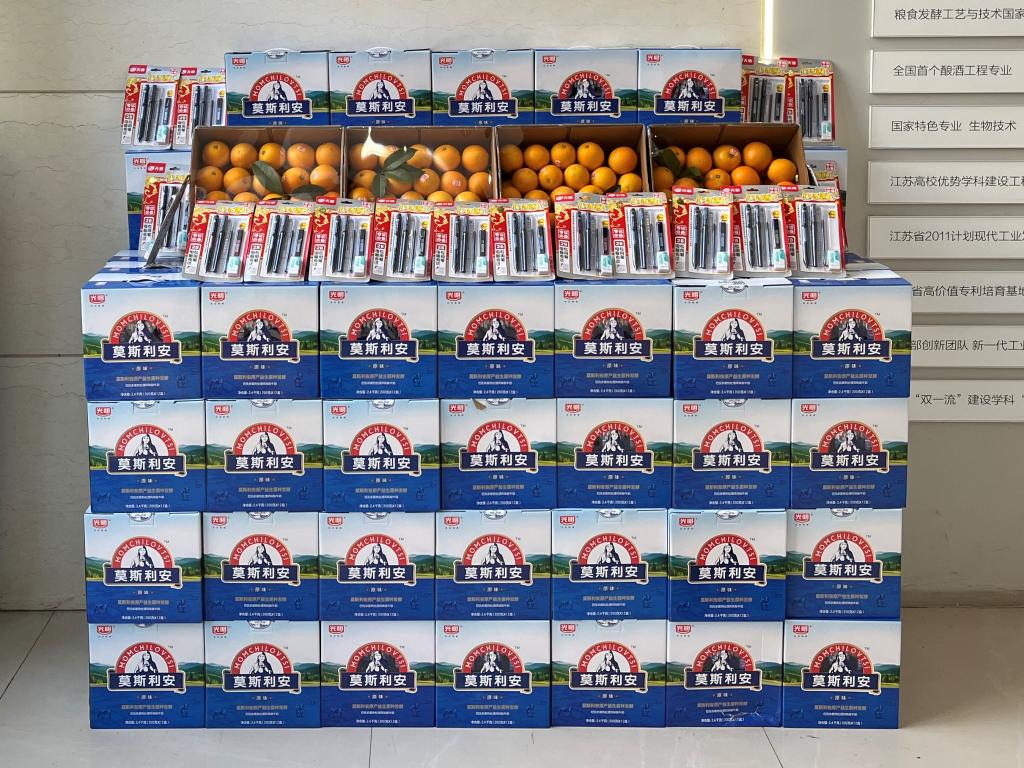 学院为同学们准备了酸奶、文具、橙子等礼物,预祝同学们“心想事橙”、金榜题名,120余名考研学子错峰来到生工楼大厅领取。91色