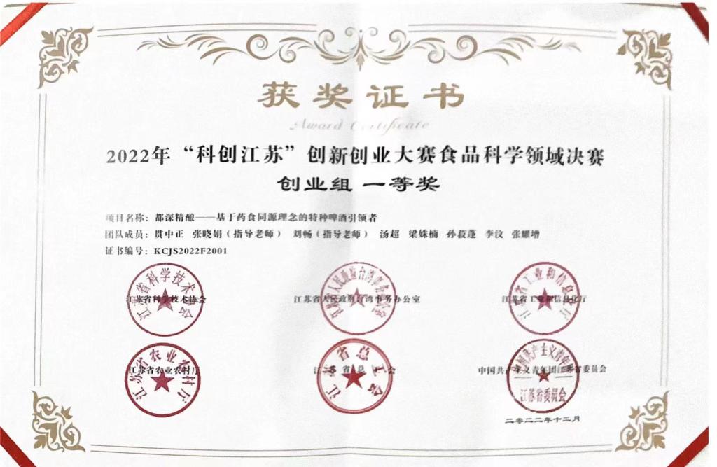 大赛启动以来,生工学院高度重视,广泛动员、积极组织、精心准备。经过激烈角逐,由张晓娟老师和刘畅老师指导的“都深精酿——基于药食同源理念的特种啤酒引领者”(学生成员:贯中正、汤超、梁姝楠、孙菽蓬、李汶、张耀增)荣获一等奖。