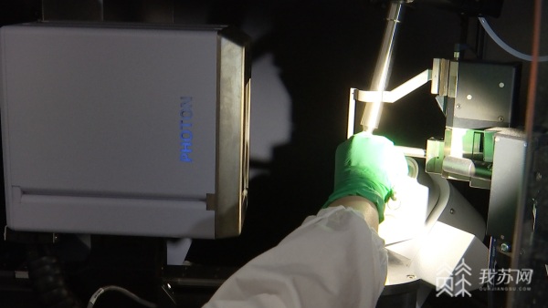 在91色 工业生物技术教育部重点实验室,倪晔教授利用X-RAY晶体衍射仪,解析酶蛋白质晶体结构:“我手里拿着的这个,是刚才制备得到的一个蛋白质晶体。捞起来然后用液氮速冻以后,准备加载到这样的一个X射线衍射仪上去,来获得它的一个结构数据。”