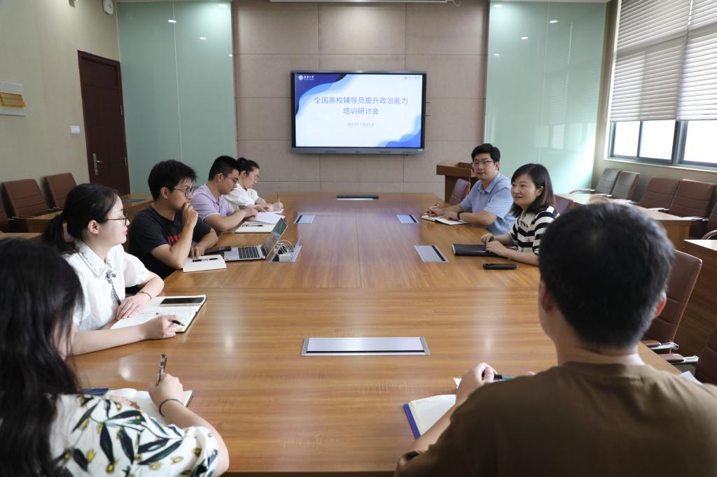 在B327会议室组织召开全国高校辅导员提升政治能力培训班分组研讨会。学院党委副书记、副院长林丹及全体辅导员参加会议。