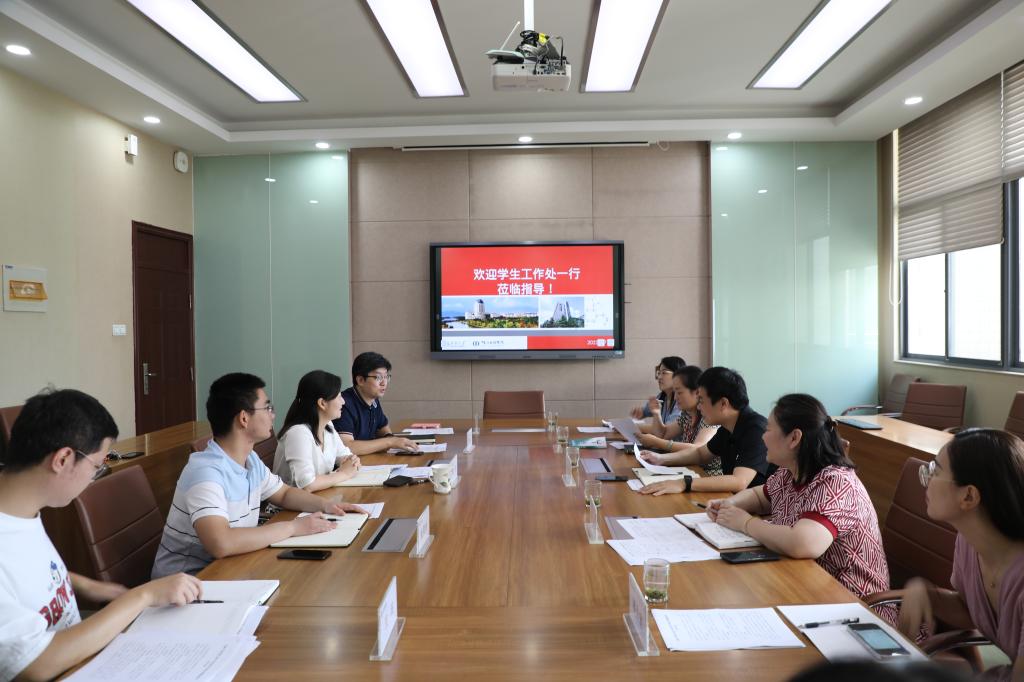 调研指导学生工作。学院党委副书记、副院长林丹,学工办主任周春江及全体辅导员参加调研交流。
