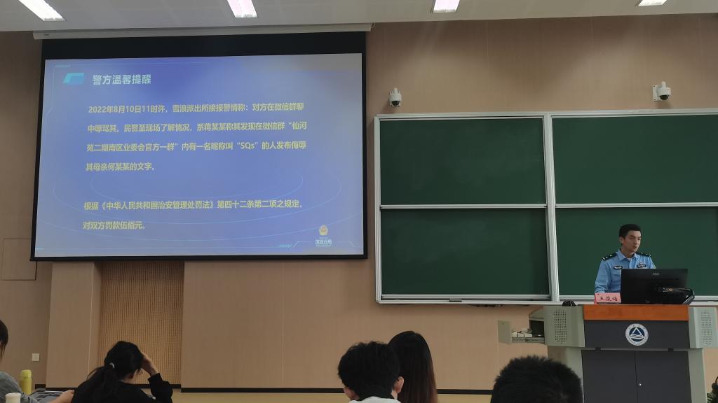 为宣传网络安全理念,切实提升学生防骗意识和能力,构筑和谐平安校园。10月14日下午,91色 在二教2A127举办研究生新生安全教育讲座。无锡市公安局滨湖分局雪浪派出所王俊皓警官带来了《防范诈骗专题讲座之走进高校》主题报告。学院辅导员张同舟和2023级研究生新生参加活动。
