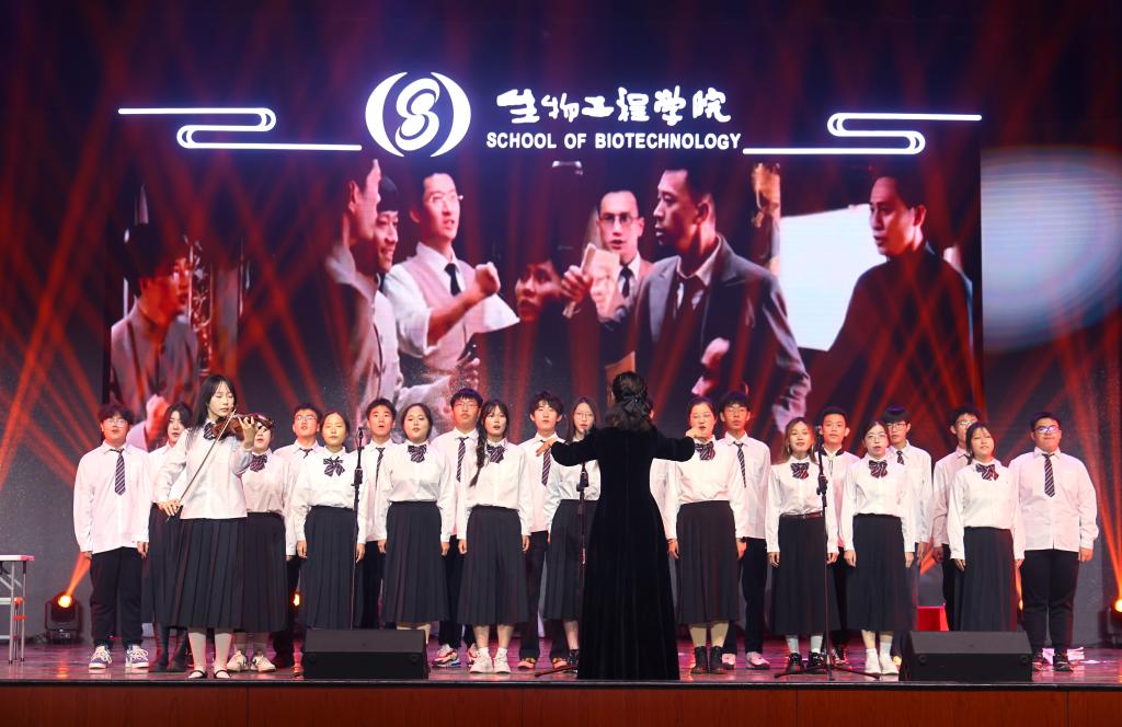 第三篇章,沐光·星河之志。学院行政老师才艺满满,带来歌舞串烧《向上》,温情与活力交织,彰显学院教师风采;生工健儿将球场搬上舞台,体育风采秀《生动起来》将文艺与体育碰撞火花,彰显学院“生动起来”的体育精神理念;生动起来、生生不息是铭刻在每位生工学子基因中的专属关键词,跟随《生生不息》音符的跳跃,感受永不熄灭的力量与永恒的生机。终章一首《夜空中最亮的星》带动全场大合唱,星光、灯光交织,晚会氛围达到顶峰。