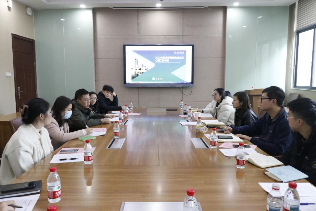 召开2025年秋季学期新生班主任心理工作专项培训会,学院党委副书记、副院长林丹,学院心理辅导员王珏以及2025级本研年级辅导员、班主任参与本次培训。