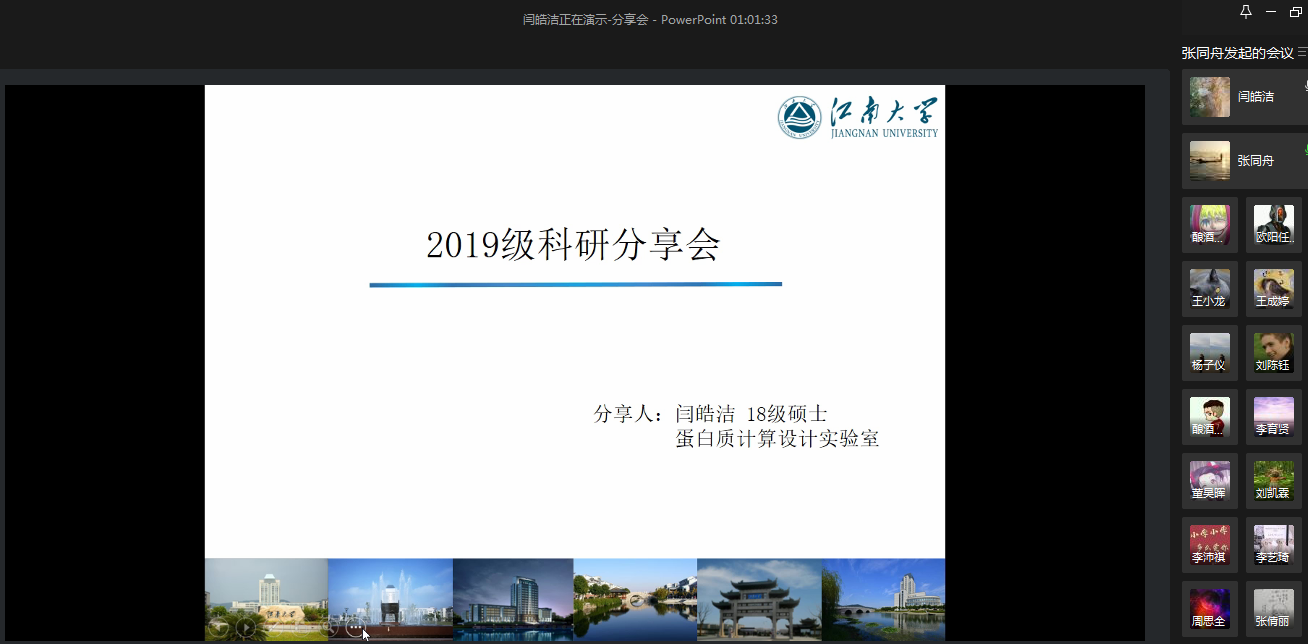 随后,来自蛋白质计算设计实验室的18级硕士生党员闫皓洁着重介绍了与她课题相关的内容。计算机模拟对大部分同学而言是个全新的概念,闫皓洁的分享极大地激起了同学们的探索欲与和好奇心。闫皓洁表示“研究生阶段的学习是一个将理论转化为实践的过程,科研过程中需要切忌浮躁,眼高手低,要严于律己,脚踏实地。”她将科研归纳为“发现问题-分析问题-寻找方法-解决问题”的循环过程,并建议同学们在本科阶段多参与实验室锻炼。