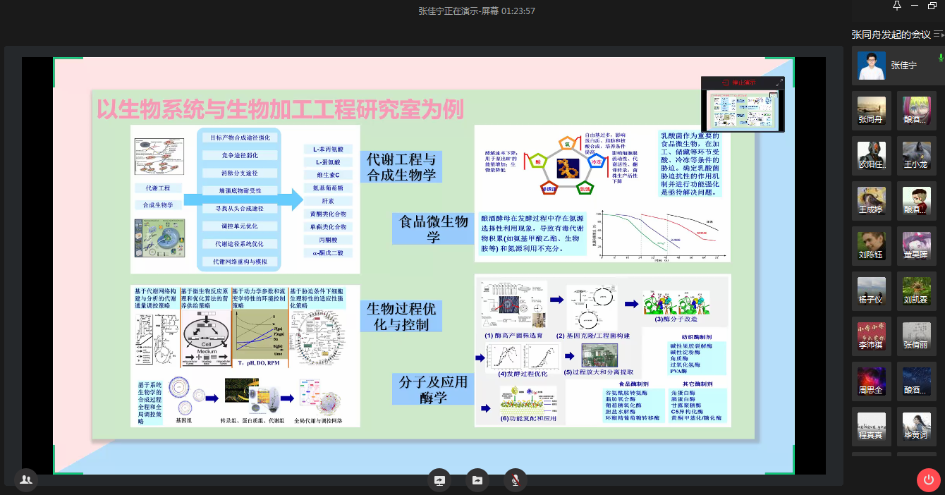 分享会最后,张同舟老师也对同学们的专业学习和未来发展提出了建议指导,希望同学们能够不负韶华,脚踏实地、求知笃学、探索创新,做一名有梦想、有规划、有行动的“善于实践,勇于创新”的生工人。
