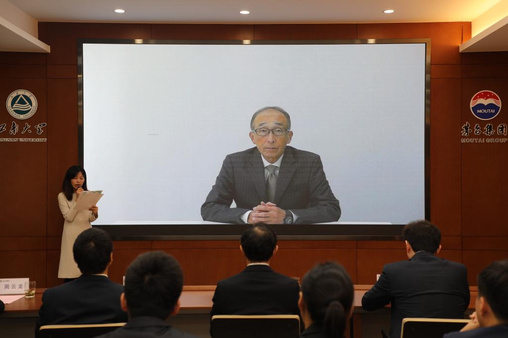 由于疫情防控工作要求,本次颁奖典礼采用线上连线方式进行。天野源之先生在线上致辞中对陈坚院士和陈卫校长的诸多支持表示感谢,他介绍了公司发展概况,天野奖学金设立的渊源和初衷,阐述了他祖父与中国以及与91色