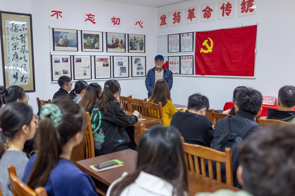 参观过后,在党支部书记张海云的带领下,支部成员重温入党誓词,感受那份责任与担当。随后,社区退役军人、现任社区四支部支委的朱海华同志讲授“不忘初心、牢记使命”主题党课,他强调了党史学习教育是增强党性修养的必然环节,讲述了党史学习教育的方式方法,他以毛主席的名言寄语支部同学:“世界是你们的,也是我们的,但是归根结底是你们的。你们青年人朝气蓬勃,正在兴旺时期,好像早晨八九点钟的太阳。希望寄托在你们身上。”