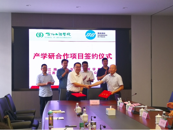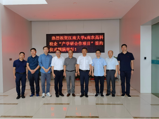 的合作签约提出了期望;史劲松教授回顾了与企业的交往故事,并充分肯定双方合作项目的重要意义;许正宏教授指出要与南农高科通力合作,深入推进合作项目的实施,同时也希望本次的校企合作能进一步升华为校地合作。会后,许正宏、史劲松教授一行还与南农高科研发团队就企业产品研发过程中的细节问题进行了深入交流与探讨,为研发工作的全面开展进行了规划和展望。