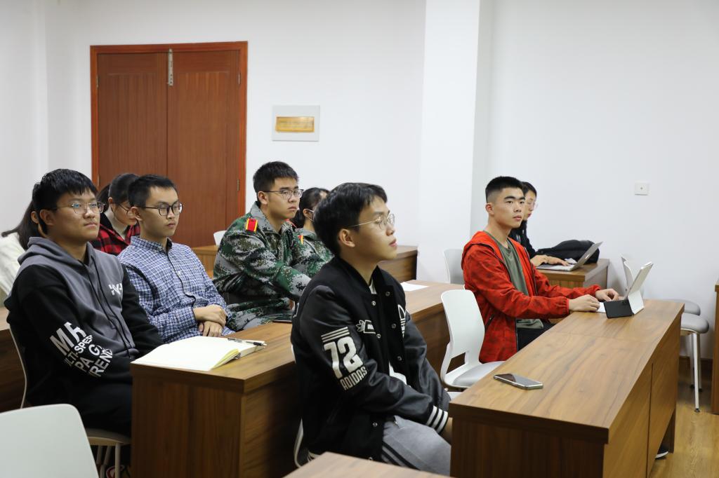 交流会的最后,优秀学生代表于海波、周庭安分享了自己的国际交流经验,从学长的角度和学弟学妹们分享了自己曾经在英国的学习生活经历,交流会现场传来阵阵欢笑声。