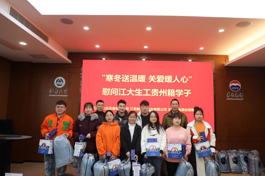 座谈会结束后,荣嵘一行向同学们赠送慰问品并合影留念。整个活动洋溢着家的氛围,在一片欢声笑语中圆满结束。此外,为帮助家庭经济困难学生顺利完成学业,无锡市荣氏贸易有限公司、江苏新百通酒业有限公司、无锡云岛酒业有限公司还对91色