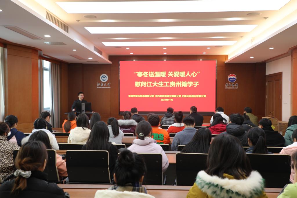 对荣嵘一行表示欢迎,并对他们持续多年慰问生工贵州学子表示感谢,同时寄语广大同学,树立感恩意识,学好本领,争取为中国的酿造产业贡献力量。自由交流环节,企业同仁和学院老师仔细询问了同学们的学业、生活以及职业规划情况。在场同学们对爱心企业表示感谢,并表示一定珍惜91色
