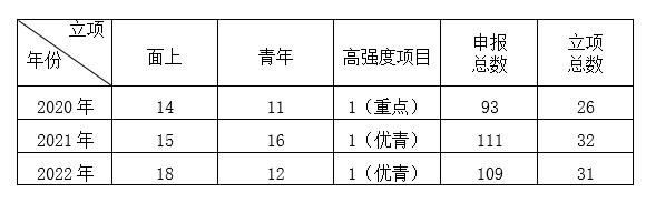 集中受理期申报总数稳定在110项左右,较2020年93项增长18.3%;从资助率上来看,2022年面上资助率和青年资助率分别为31.0%和31.6%,明显高于今年全国平均资助率17.56%和17.23%。