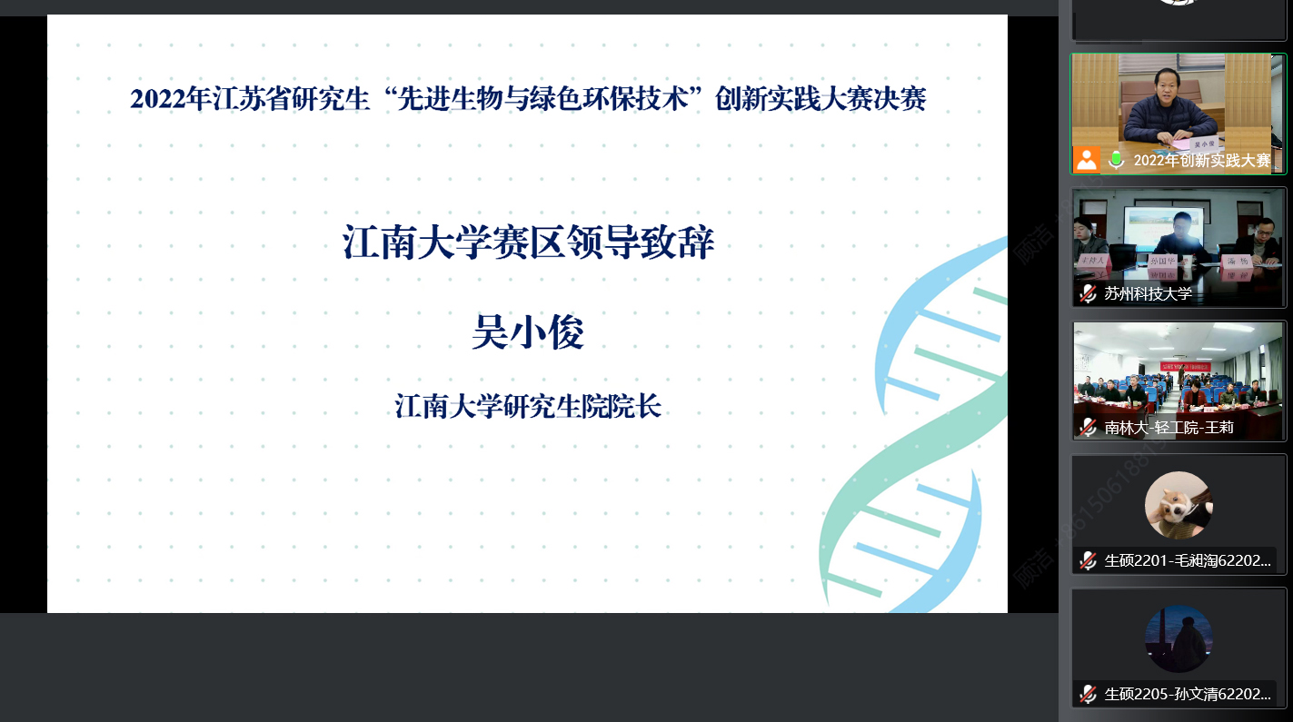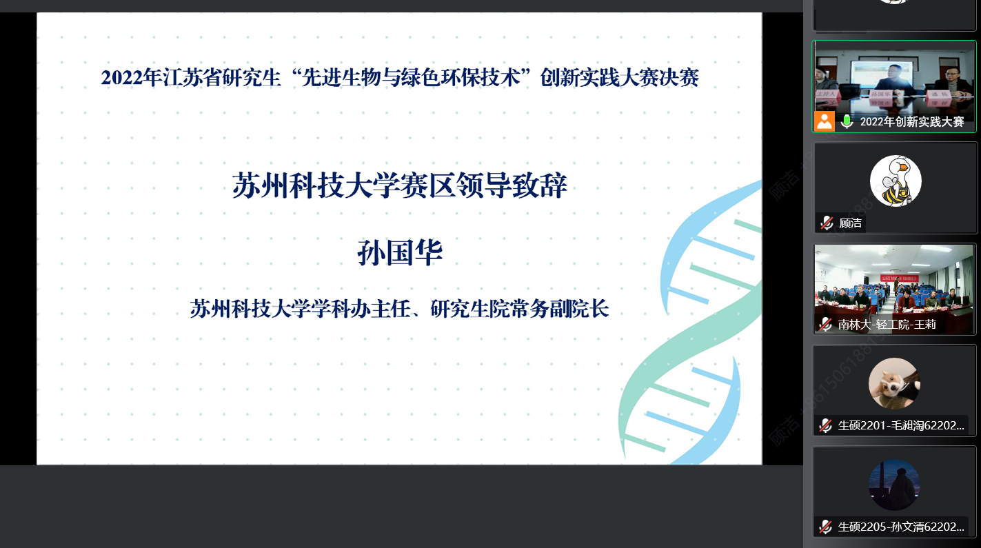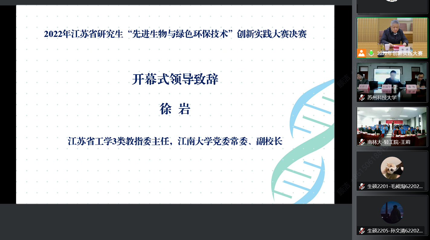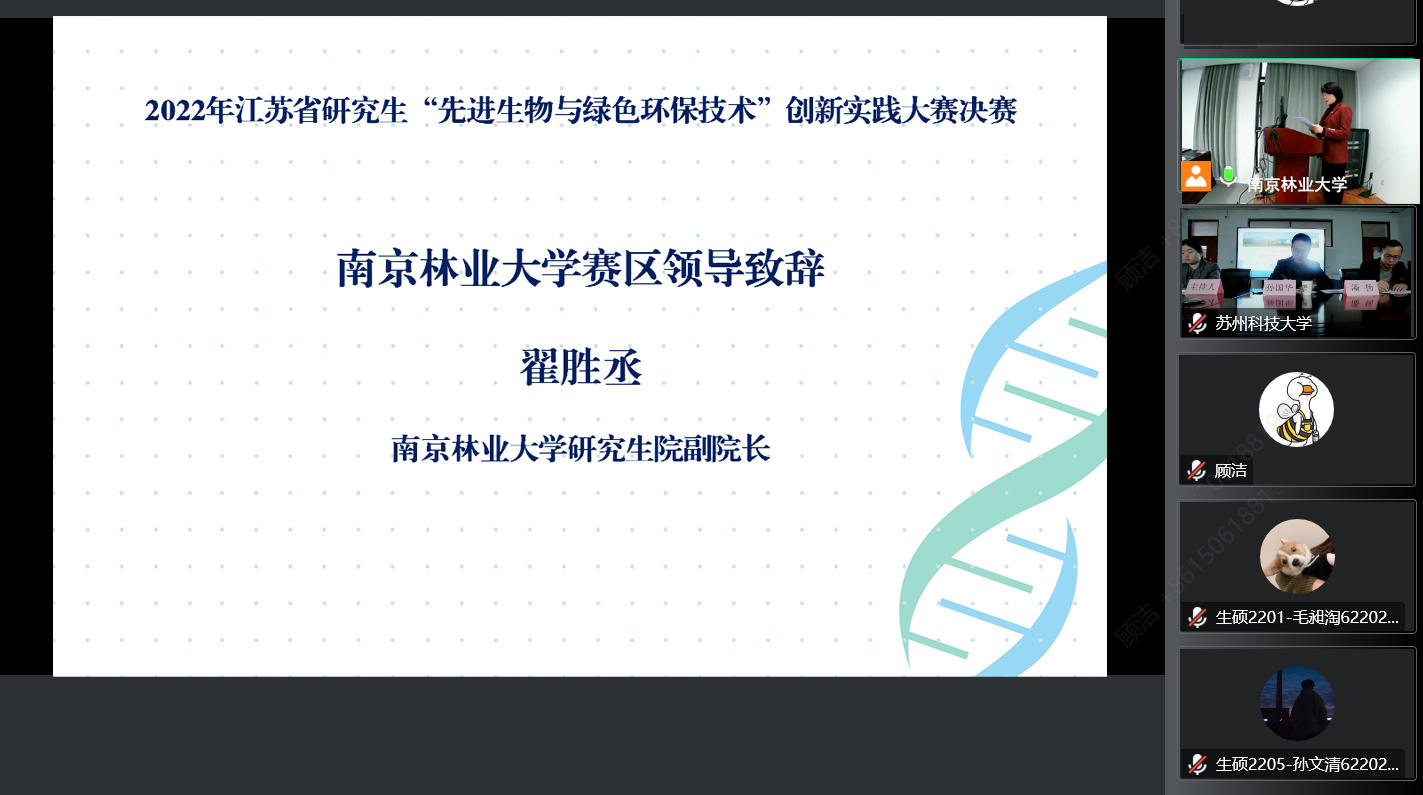 、南京林业大学、苏州科技大学、江苏大学联合承办的2022江苏省研究生“先进生物与绿色环保技术”创新实践大赛拉开帷幕。来自厦门大学、中国科学院青岛生物能源与过程研究所、华东理工大学、西安交通大学等20余所高校的400余名师生通过线上方式参加了本次大赛。江苏省工学3类教指委主任、91色