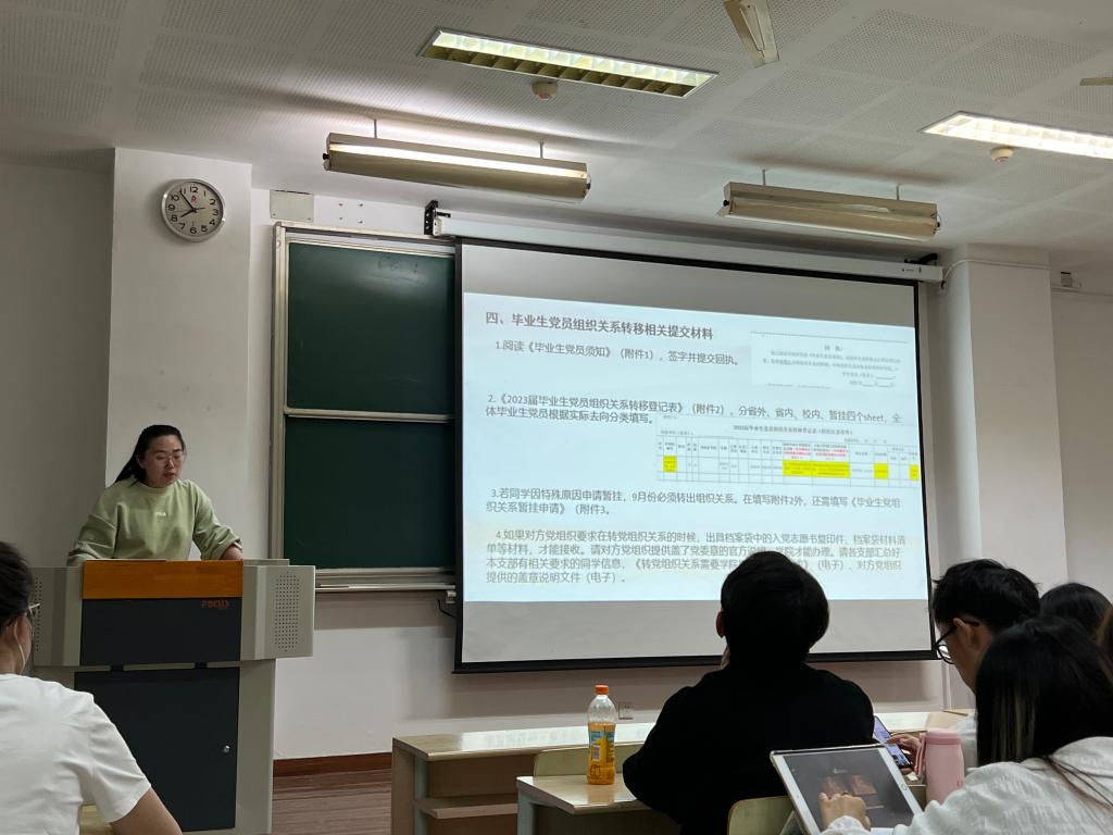 毕业生党员离校在即,严肃、及时、妥善办理组织关系转接手续是党的纪律要求。各毕业班党支部召开专门的党员组织关系转接说明会,详细说明组织关系转接和档案移交的注意事项,进一步强化党员的身份意识和责任意识。