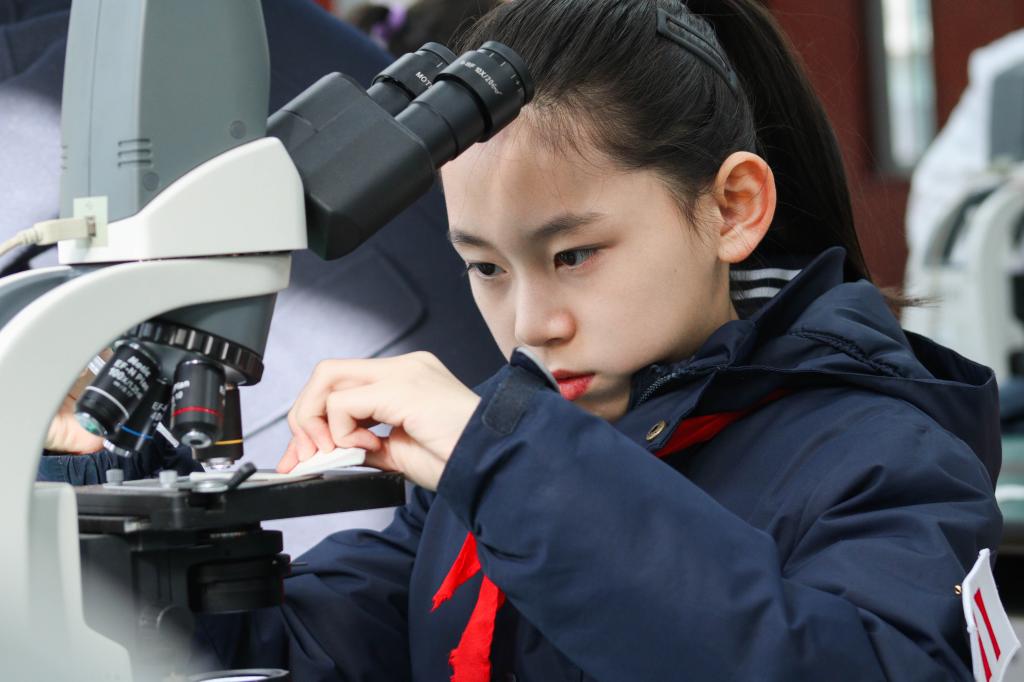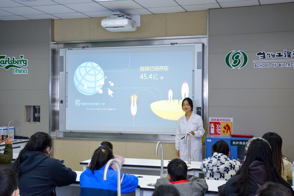 学院酿酒2302特称团支部为小朋友们带来了《微生物统治世界》的主题分享。从微生物调节地球环境到微生物呵护人体健康,妙趣横生的内容,生动精彩的讲述,深深吸引着每一位小朋友。随后,团支部同学们带领小朋友们沉浸式体验科学小实验。每位小朋友的脸上都洋溢着期待和兴奋之情。第一个实验是利用气球感受酵母菌呼吸的“痕迹”。小朋友们小心翼翼地将气球套在装有酵母与蔗糖混合溶液的瓶口上。在水浴过程中,小朋友们惊奇地发现气球逐渐变大,不禁为实验的成功拍手叫好。紧接着是观察洋葱表皮细胞质壁分离实验。操作时,小朋友们轻轻地推动含有洋葱表皮细胞的载玻片,耐心地调节显微镜准焦螺旋,透过镜筒,孩子们发现了微观世界的新大陆。