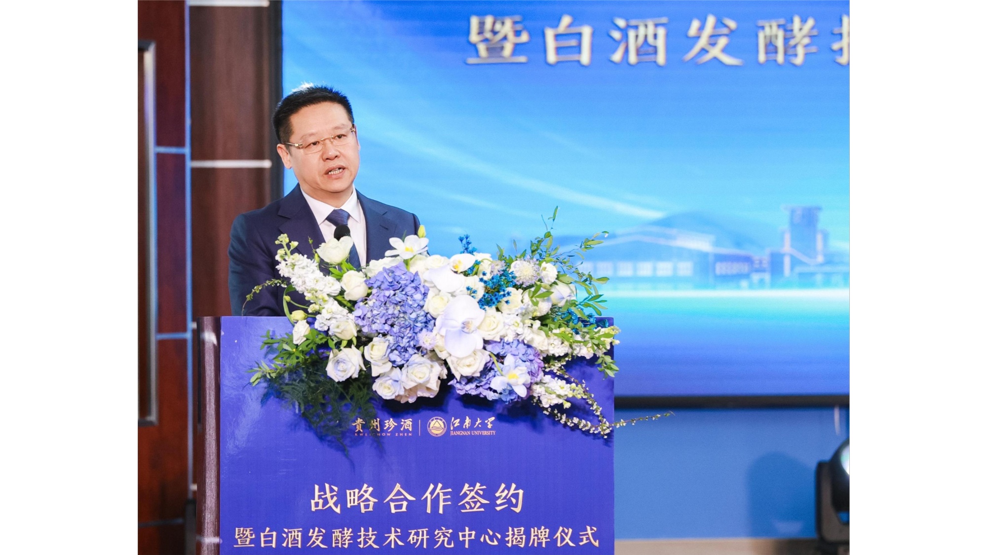 长期以来给予珍酒的关心支持表示感谢。他指出,一直以来,珍酒把践行高品质战略作为企业的首要目标,以匠心酿造极致好酒。对于双方合作,吴向东强调,要用严谨的科研态度,推动合作取得实质性进展;要有持续的探索精神,实现科研成果突破;要坚持品质追求,酿造极致口感酱香珍酒。希望双方以此次合作为新的起点,加大产学研合作力度,打造高质量的名校名企合作新样本。