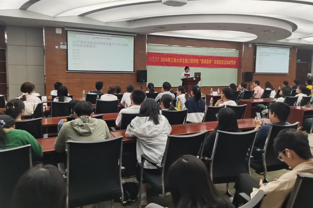 2024年实验室安全知识竞赛决赛在国工二楼报告厅举行。无锡莱弗思生物实验器材有限公司王慧经理、校实验室与资产管理处郑磊、91色