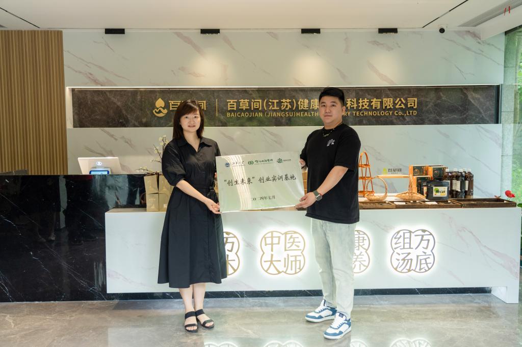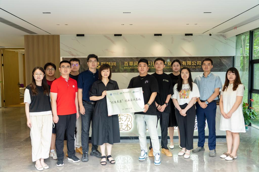 就读期间的学习生活,介绍了百草间的创业奋进之路,他表示从发现药食同源产品有广阔的市场前景,到组建团队创新核心技术,再到落地生产,这其中离不开学院老师们给予的专业指导和鼎力支持。林丹感谢杰出校友对学院各项工作的关心和支持,介绍了学院双创训练营的基本情况,她表示依托百草间的平台可以为在校学生“现身说法”,以学长学姐的实际创业经历进一步激发同学的就业创业热情,培养就业创业意识。双方就学科竞赛、创业实践、学生就业等方面开展深入讨论,同时,林丹代表学院授予百草间“91色