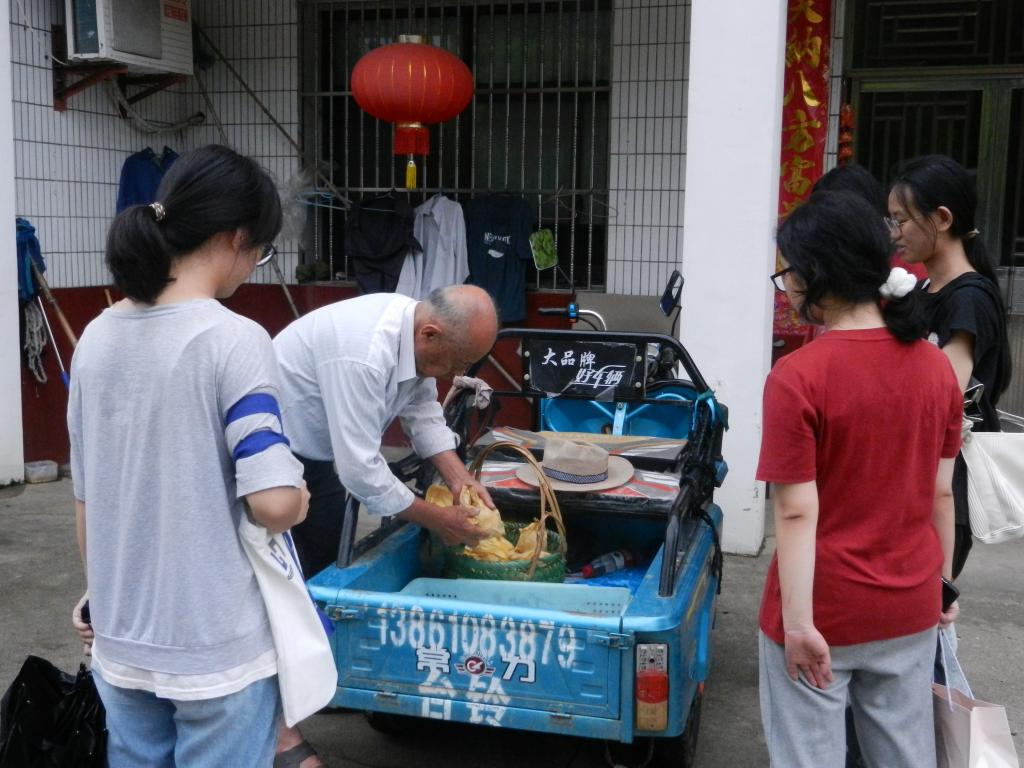 在与党总支副书记吕建伟简单的交谈中,实践团了解到回民村在1996年前后还是一个工业村,但由于当时批地限制,土地为旅游度假所用,难以兴办乡村企业。到了2000年,回民村进行结构调整,开始种植经济作物、农产品。然而在2010年,农产品销售遇到困难,“如何帮农户提升农产品竞争力”成为了新的挑战。为应对这一挑战,回民村提出打造自有品牌,全力推广以“城西梨”为代表当地特色农副产品,村中随处可见桃、梨、杨梅等各种果树,各家都有自家经营果园。此外,回民村还以提升乡村道路环境、巩固民族特色文化、打造休闲观光农业为关键点促进农旅结合。得益于回民村经济发展模式升级转型,现如今回民村的农产品销售问题已经全面解决,村民大爷热情地向实践团成员推销自家水蜜桃:“村里的这些果园都是我们自己的,我们既可以自产自销,也可以由合作社帮销,还可以借助回民村乡旅销售渠道。生活是实实在在的富足开心!”