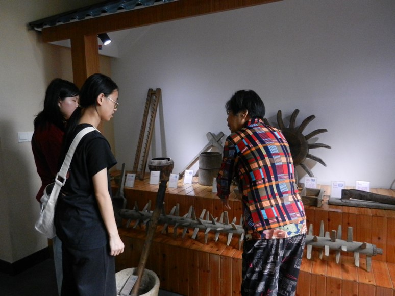 当地村民为实践团成员介绍陈列物品