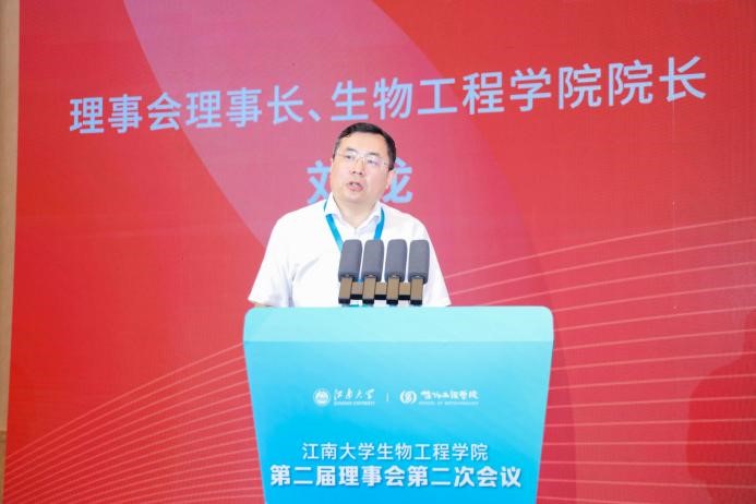 院长刘龙教授回顾理事会发展历程,并总结过去一年理事会和学院发展成果。他从校企协同承担国家重大科学研究任务、示范引领产业技术创新、完善产学研合作创新机制、联合培养复合型高端产业技术人才等角度详细阐述了理事会在推动产学研深度融合、促进科技成果转化方面的显著成效。重大理论问题不断突破,产业关键技术持续攻克,代表性成果陆续涌现。他展望未来,指出将继续深化校企合作,共同打造生物制造领域的新高地。