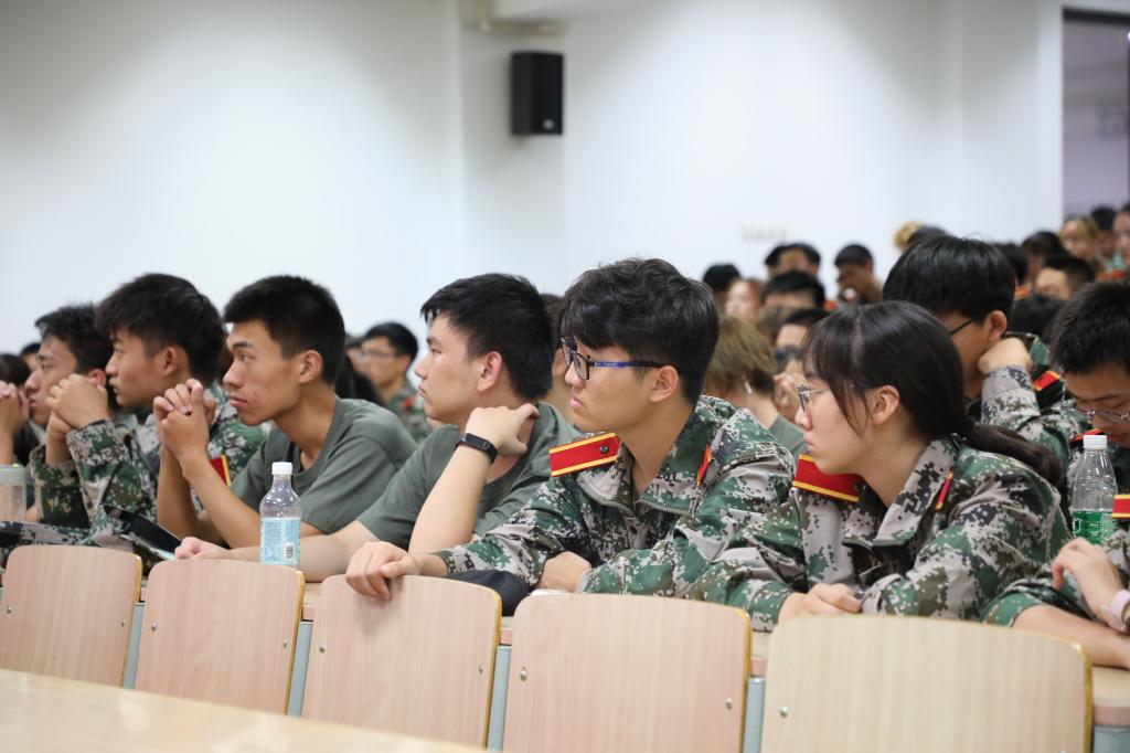 同时,周书记也为同学们介绍了军训过程中有趣的活动,如军体拳、内务整理、军歌比赛等,让同学们对军训充满向往。周书记希望在军训过程中,同学们能够多学习国防与军队知识,坦然面对百年未有之大变局,树立浓厚的家国情怀。