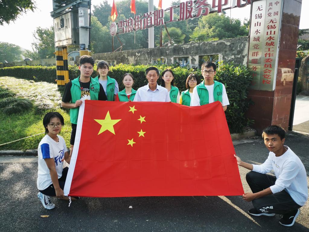 国旗班的一员,这次他带领本专业同学来到雪浪街道服务中心,向其赠送崭新的国旗,并举行了庄重的升旗仪式,看到迎风飘扬的五星红旗,同学们心潮澎湃。经过同学们的努力,8支队伍一共为10家单位更换了11面国旗,大家以独特的方式为祖国庆生,祝福伟大祖国更加繁荣富强。