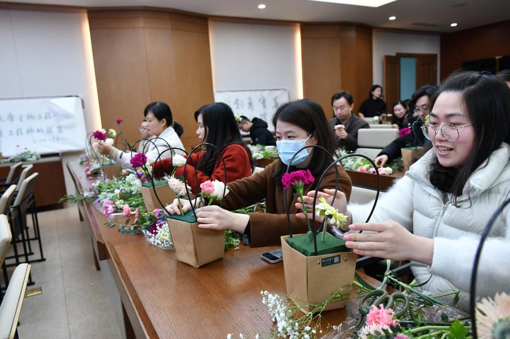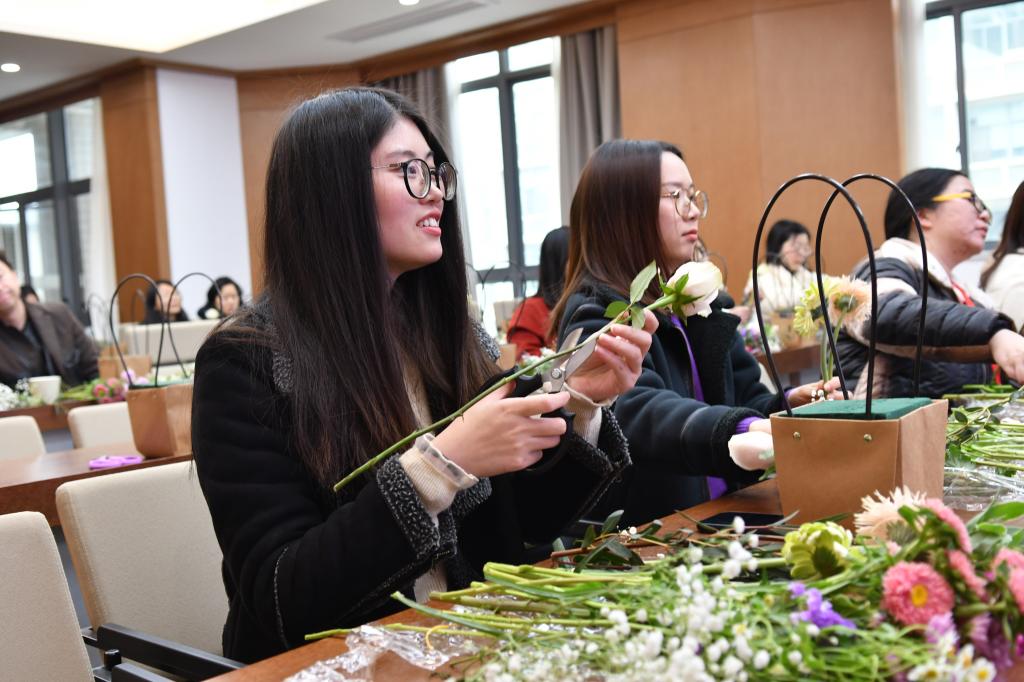 分工会为学院教师准备了“醉美巾帼”系列活动,为女性教职工庆祝节日,丰富女教师的业余文化生活。学院工会于3月5日下午在茅台厅举行了插花活动,3月8日上午举办了新时代女性形象中的色彩美学讲座。