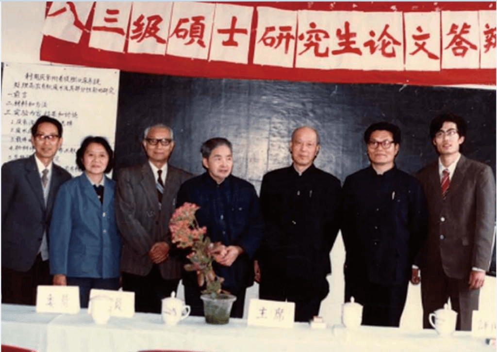 王鸿祺(右三)参加83级硕士李建科学位答辩,1986